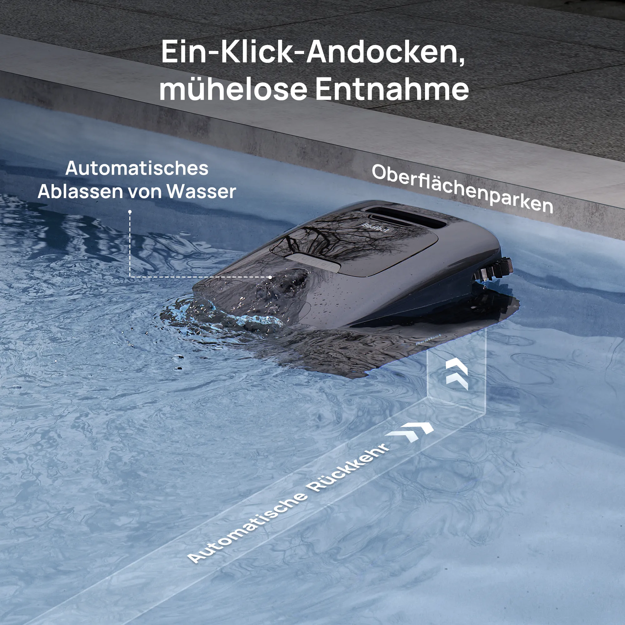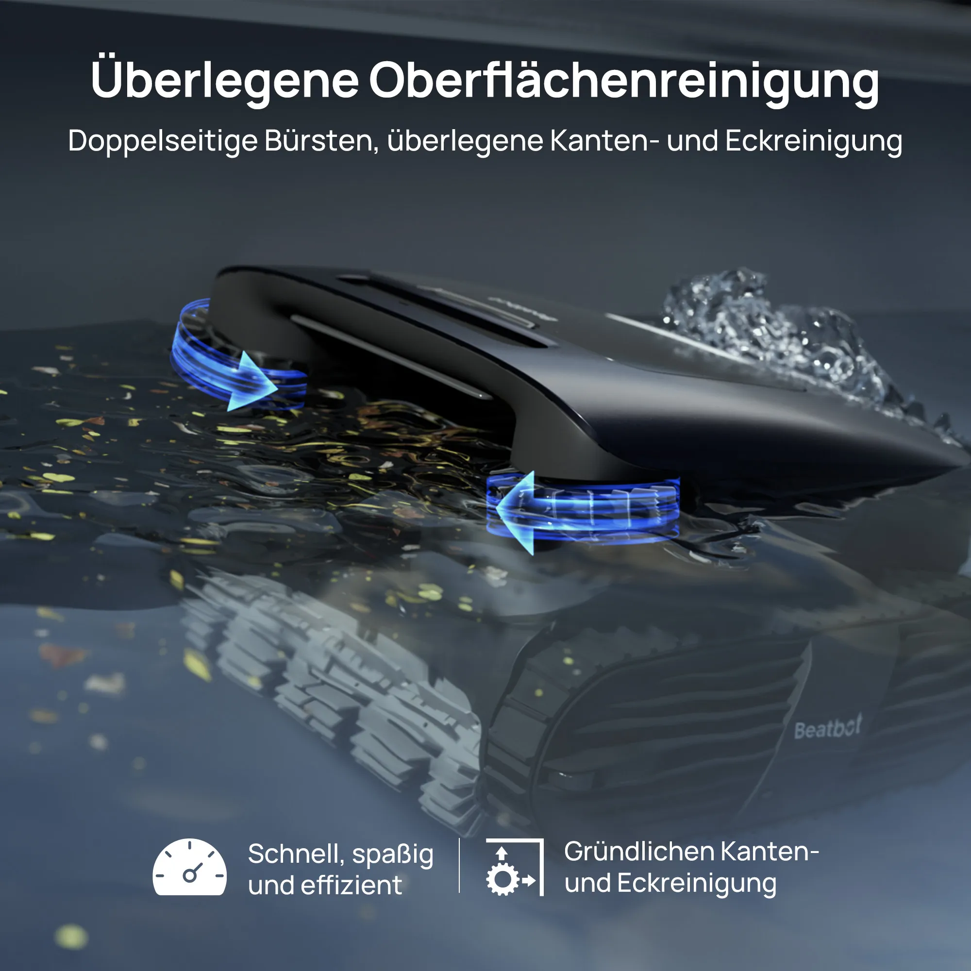 • 5-in-1 Reinigung: Wasseroberfläche, Wasserlinie, Boden, Wände, Wasserklärung